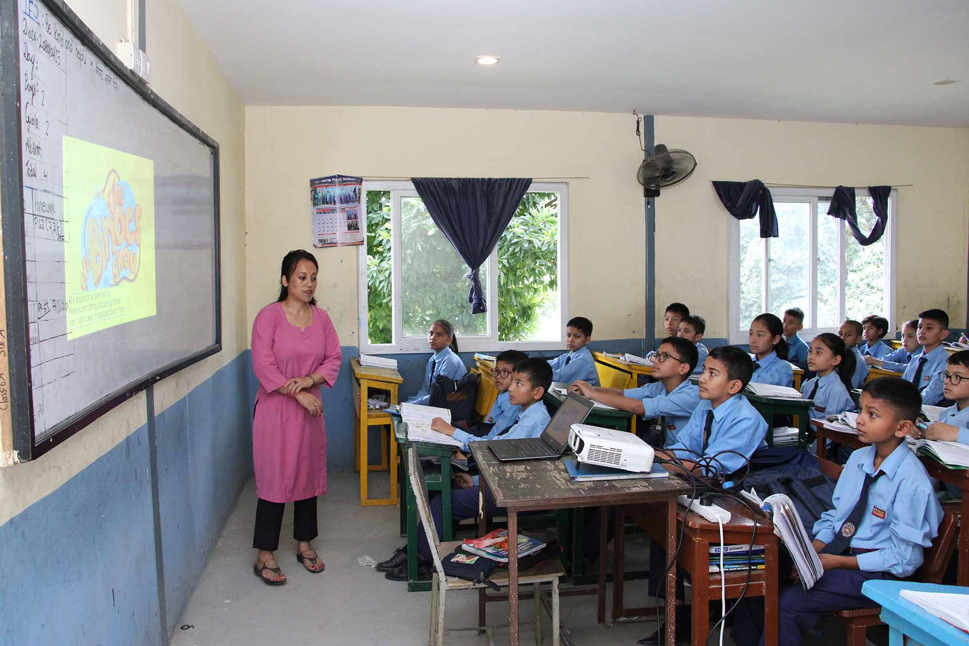 Our junior wing features a child-friendly, prefabricated classroom environment designed to be earthquake-resistant and minimize other potential risks. Students spend nearly 8 hours of their day in these classrooms, which are thoughtfully designed to support a variety of in-class activities conducted individually, in pairs, or in groups. In addition to section-specific classrooms, we offer shared facilities including an AV room equipped with a Smart Board, a dedicated music room with a range of musical instruments, and a collaborative working space featuring round-table setups to enhance interaction and creativity.