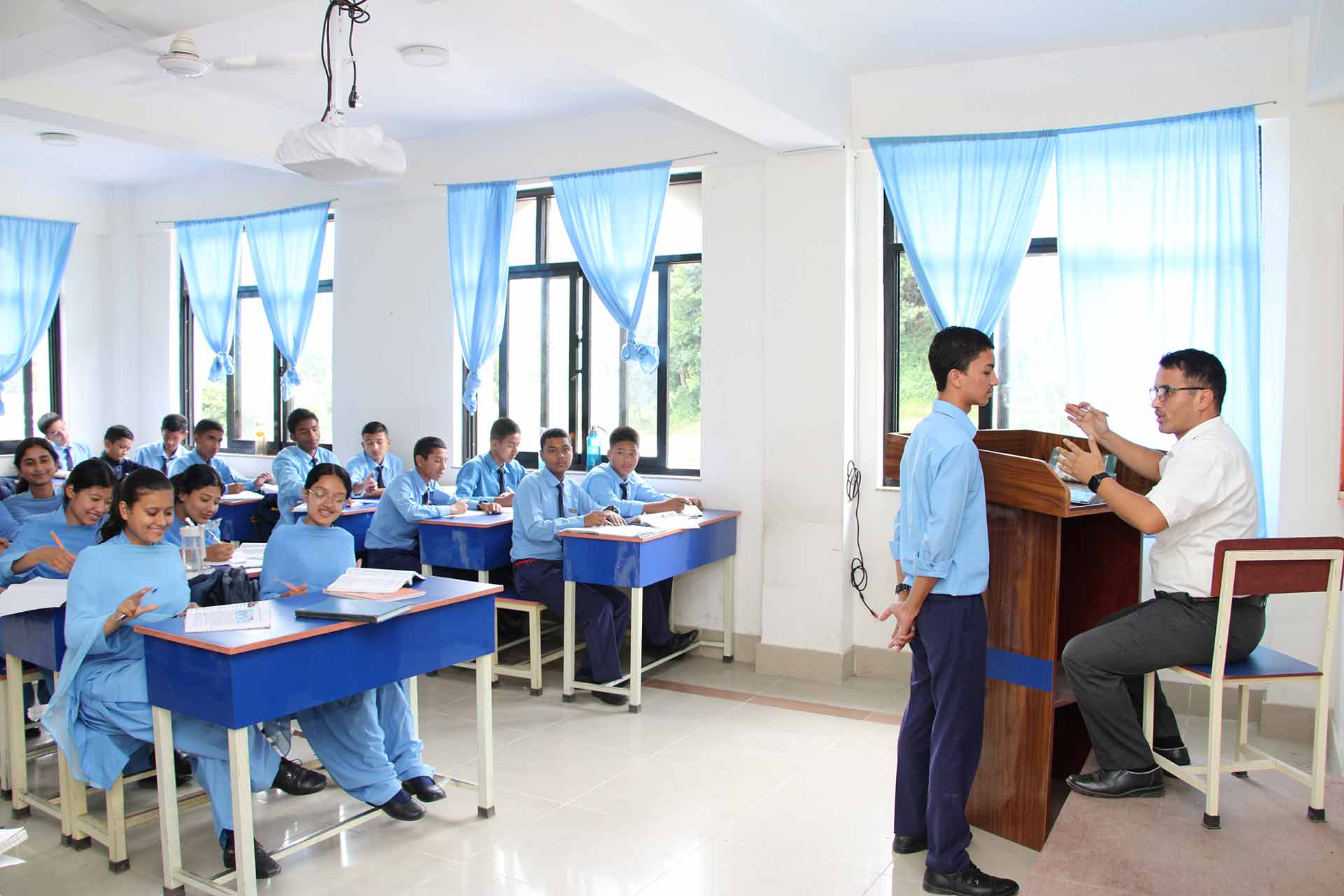 Science classes 11 and 12 run in separate buildings under the leadership of wing co-ordinator,having 3 sections in each grade.This wing has 14 well trained, qualified and fully dedicated faculty, spacious classrooms and well equipped science labs.It is mandatory to stay at a hostel for science students.